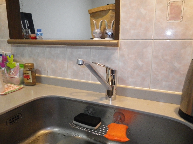 残った古い水栓の台座部分に樹脂製のカバーを取り付けますので、見た目はいまいちかもしれません。